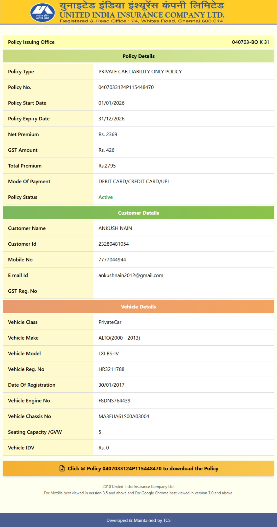 • United India Insurance : Policy Information